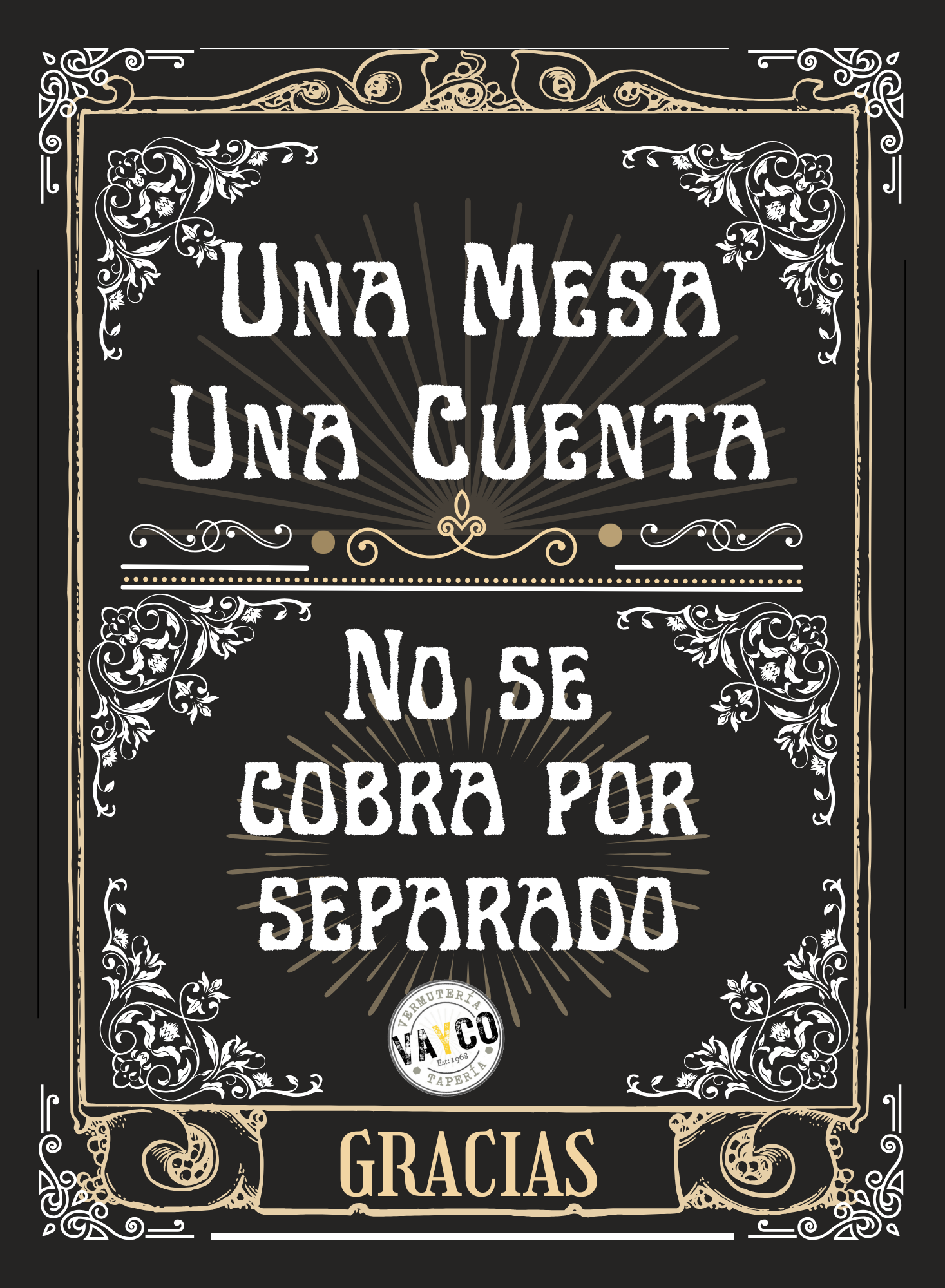 Emitimos un único ticket por mesa para facilitar el proceso de pago y evitar confusiones. No realizamos cobros por separado si se han solicitado en una misma mesa.